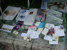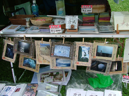 2006/05/28:石山公園〔倉式〕はこんな感じ おひさまアートバザールに参加した!の巻き 今日はパウハウスの招待で 岡山の石山公園で開催された 「おひさまアートバザール」に参加しました。 ミニコミ誌「倉式」の先行販売も行い、26冊が売れました。 店番は、永井さん、ともちゃん、鳥越さんがしてくれました。 ありがとうございました。 なかなか反応は良好でしたよ。 |