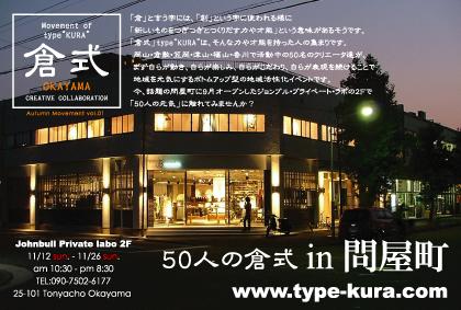 | ’06 11 CREATIVE COLLABORATION type“KURA” 「倉式」 vol.01 in OKAYAMA | |||